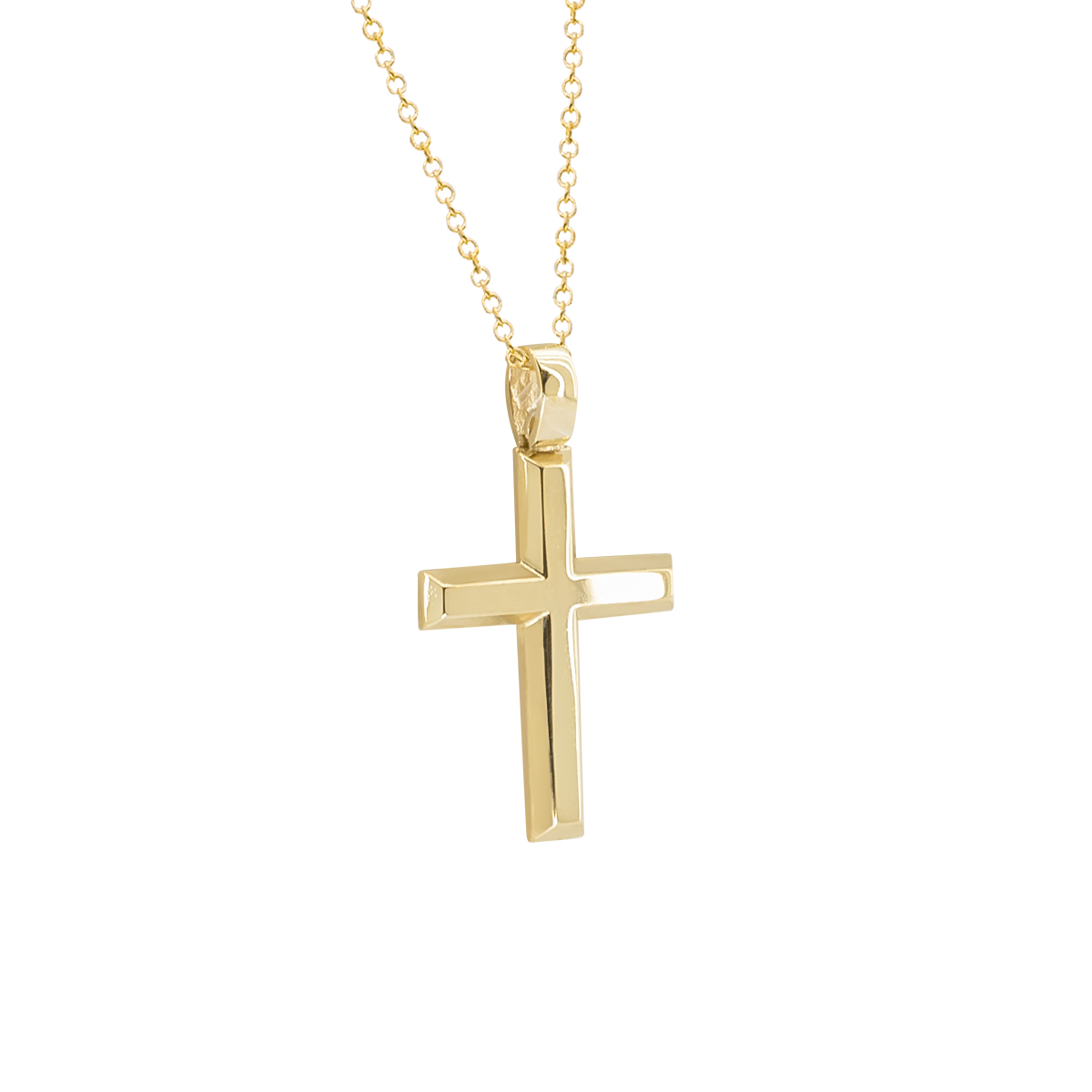 Timeless 9K gold cross with a simple and elegant design. A perfect choice for everyday wear or as a thoughtful gift. Comes with a 9K gold chain.
