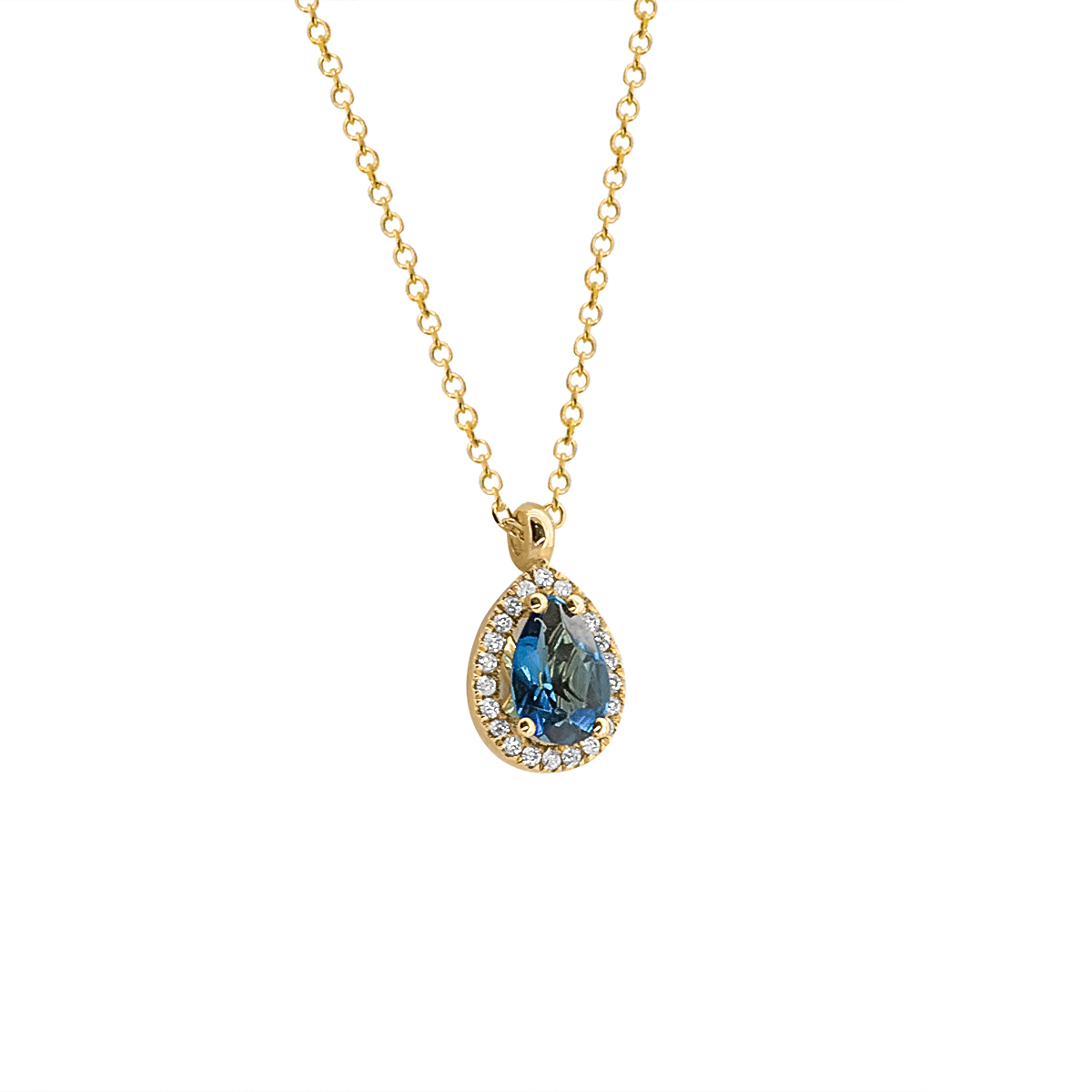K18 Pendant with Natural London Blue Topaz and Natural Diamonds
