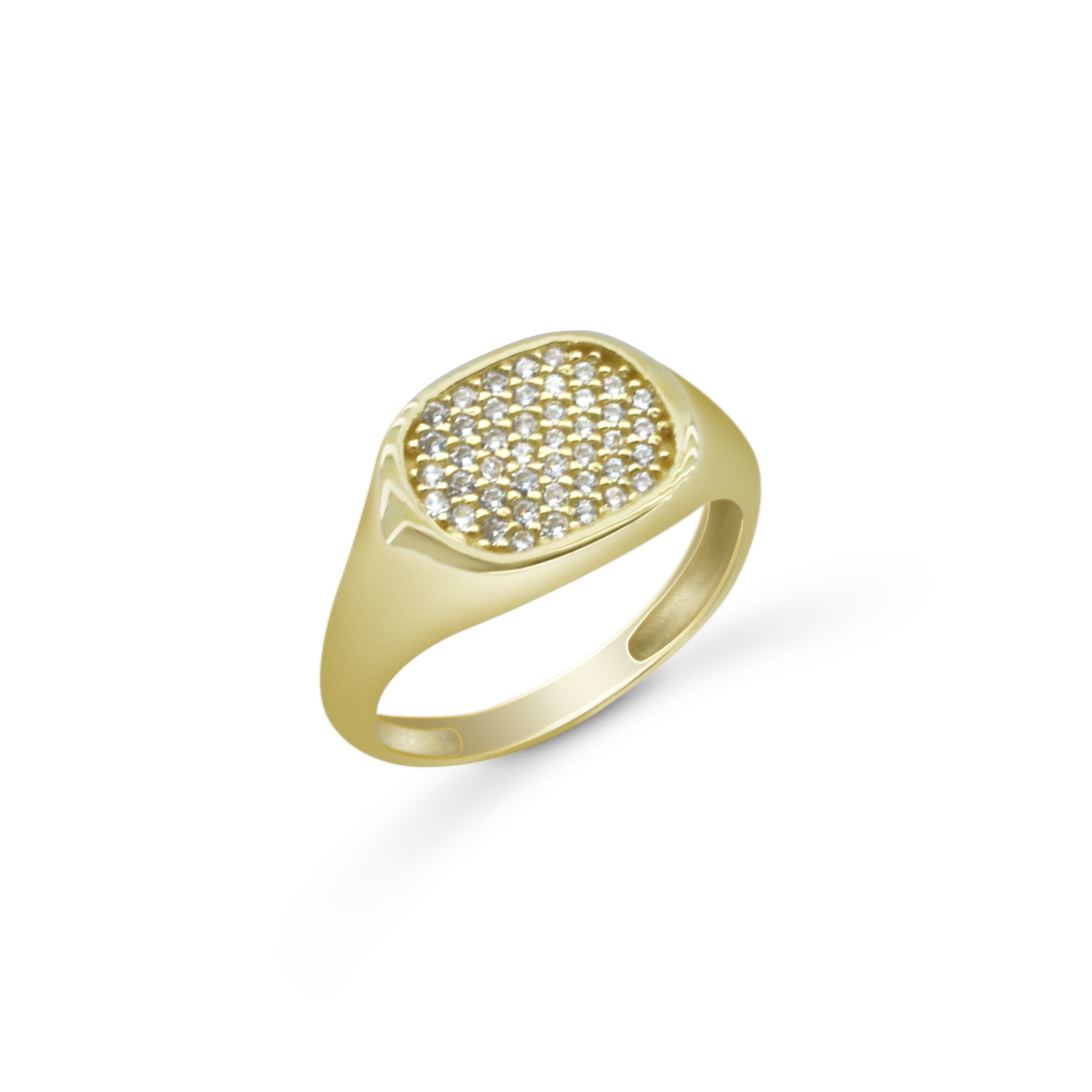 Impressive K14 gold ring adorned with sparkling zircon stones that bring refined brilliance. A sophisticated piece that radiates luxury and style.