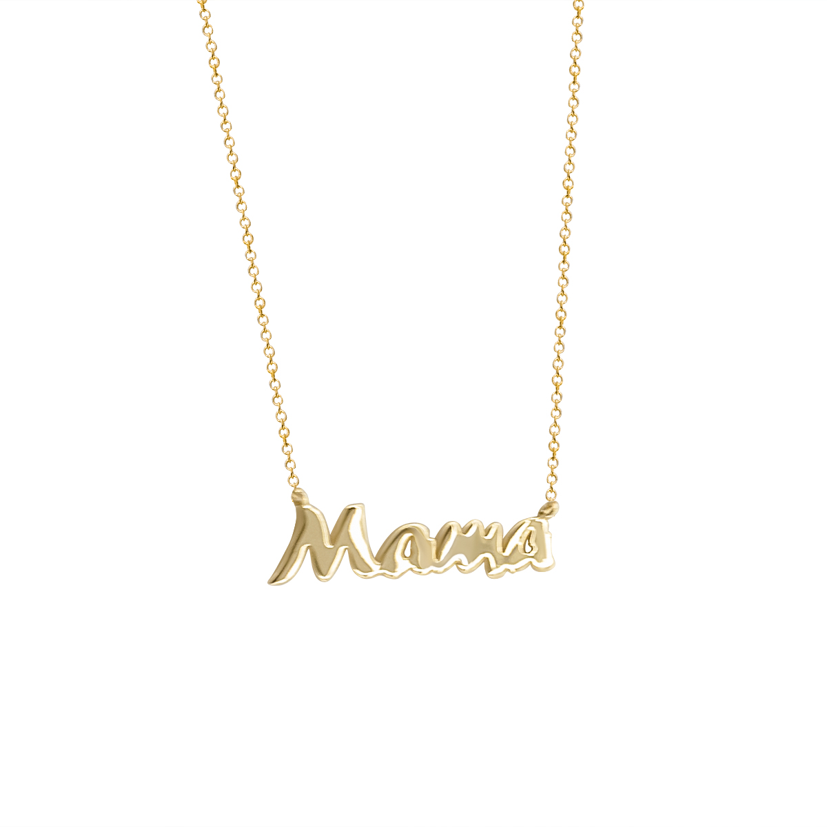 Εμπνευσμένο από τη λιτότητα και την καθαρότητα των γραμμών του Mejuri, αυτό το κολιέ 45 cm είναι κατασκευασμένο από χρυσό 14 καρατίων και φέρει τη λέξη «Mama» σε καλλιγραφικό, ισορροπημένο σχέδιο. Η λεπτή αλυσίδα και το γυαλισμένο φινίρισμα προσδίδουν ένα διακριτικό αλλά σύγχρονο ύφος που φοριέται εύκολα κάθε μέρα.