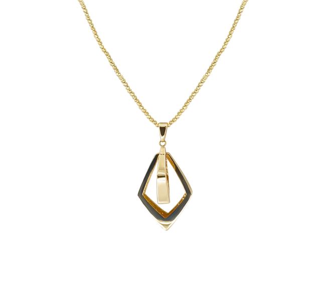 Αλυσίδα από χρυσό 18 καρατίων συνδυασμένη με μενταγιόν από χρυσό 14 καρατίων σε σύγχρονο γεωμετρικό σχέδιο. Οι καθαρές γραμμές και η ανάλαφρη κίνηση των επιπέδων δημιουργούν ένα κόσμημα υψηλής αισθητικής που αποπνέει μοντέρνα κομψότητα και καλλιτεχνική ισορροπία.