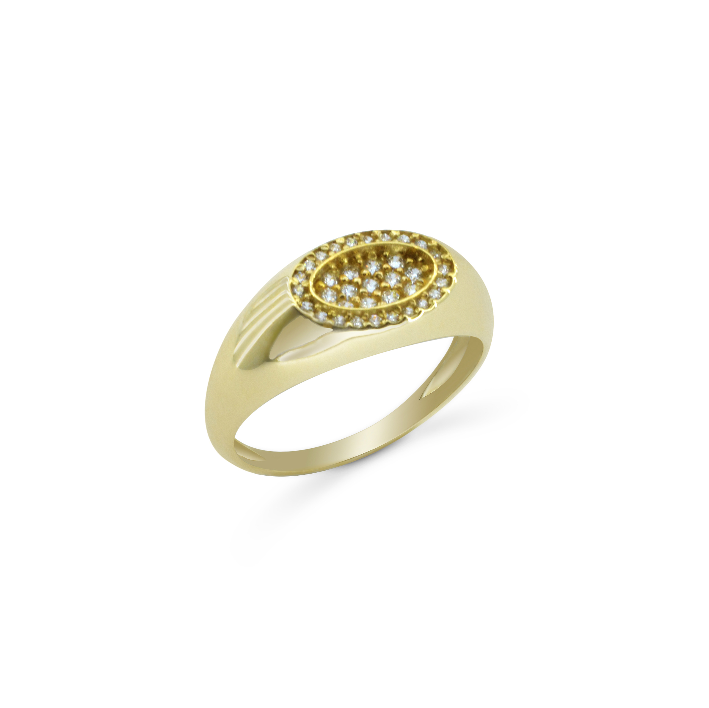 Κομψό δαχτυλίδι Κ14 σε χρυσό χρώμα, διακοσμημένο με λαμπερά ζιρκόν σε οβάλ σχέδιο. Ένα διακριτικό κόσμημα που συνδυάζει τη λάμψη με τη διαχρονική φινέτσα, ιδανικό για κάθε περίσταση.