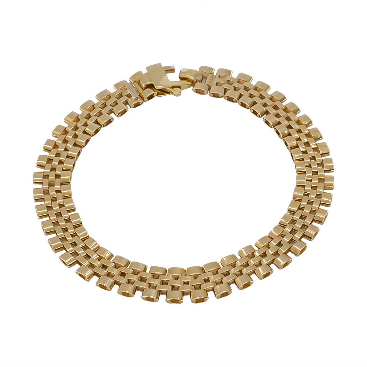 Χειροποίητο αντρικό βραχιόλι με λουστρέ φινίρισμα. Σχεδιασμένο από 14 καράτια κίτρινο χρυσό. Ένα κόσμημα που δεν θα θέλετε να το αποχωριστείτε.