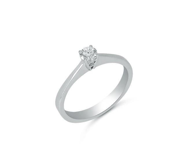 Μονόπετρο σε λευκόχρυσο 18 καρατιών με κεντρικό μπριγιάν 0.26ct. καθαρότητας VVS2 και χρώματος F. To κόσμημα συνοδεύεται από εγγύηση πιστοποίησης.