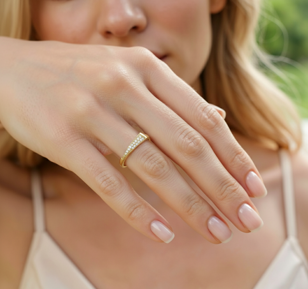 Κλασικό και εκλεπτυσμένο, το δαχτυλίδι Κ14 σε χρυσό χρώμα με λαμπερά ζιρκόν προσφέρει διακριτική πολυτέλεια και κομψότητα. Ιδανικό για να ολοκληρώσει κάθε στυλ με μια πινελιά λάμψης.