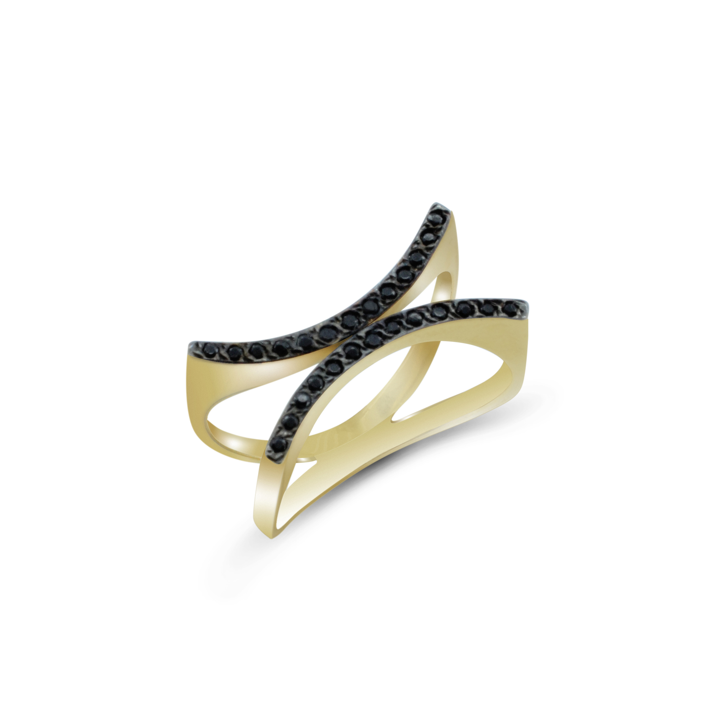 Modern and striking, this K14 gold ring with black zircon stones stands out for its unique design and bold appearance. A refined piece that radiates confidence.