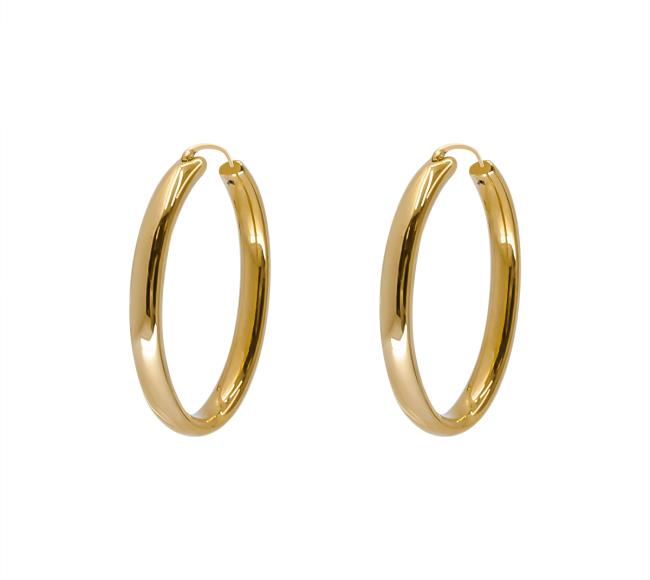 Σκουλαρίκια κρίκοι σε κίτρινο χρυσό 14 καρατίων και υπέροχο λουστρέ φινίρισμα. Ένα διαχρονικό, στην απλότητά του σχέδιο, που θα αναδείξει άψογα την εμφάνισή σας.