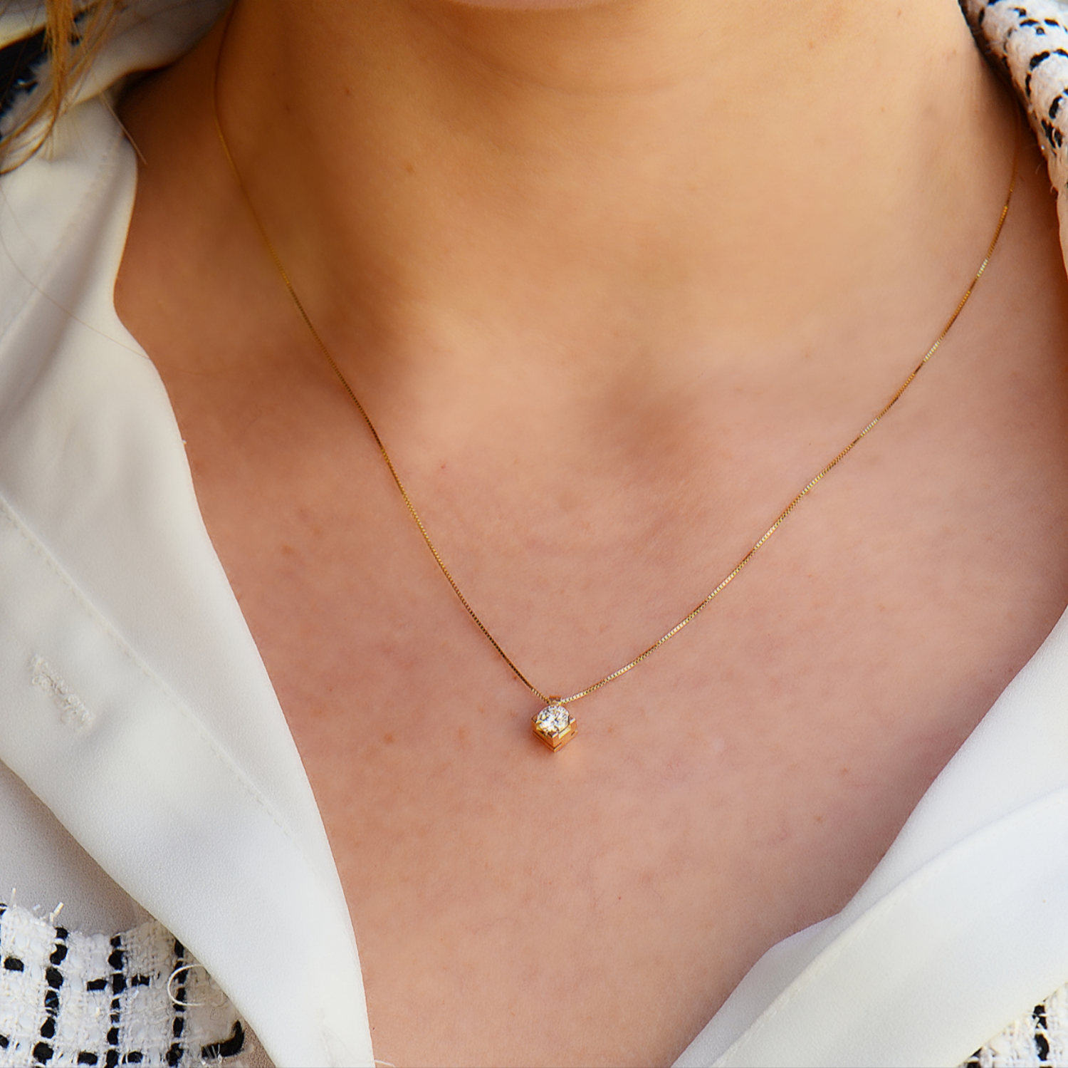 Διαχρονικό κολιέ σε κίτρινο χρυσό 18 καρατιών με μπριγιάν 0.37 , καθαρότητας VS1 και χρώματος Η. Το μήκος της αλυσίδας είναι 45cm. Η διαχρονική του κομψότητα θα το αναδείξει σε αγαπημένο κομμάτι της συλλογής σας. Το κόσμημα συνοδεύεται από εγγύηση πιστοποίησης.