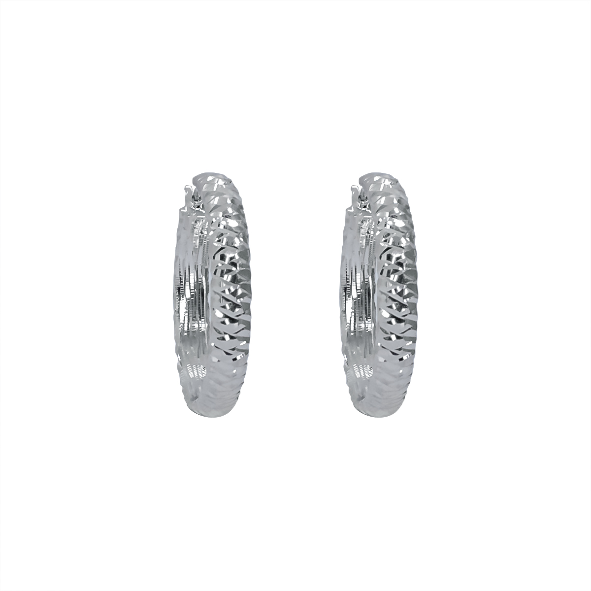 Σκουλαρίκια κρίκοι σε λευκόχρυσο 14 καρατίων με ιδιαίτερο σφυρήλατο σχεδιασμό. Μια εντυπωσιακή επιλογή που αναμφίβολα θα προσθέσει κομψότητα στις εμφανίσεις σας.