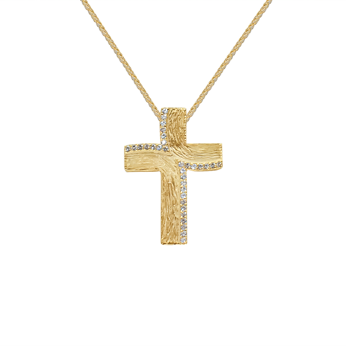 Σταυρός σε κίτρινο και λευκό χρυσό 14 καρατίων, διακοσμημένος με πέτρες ζιρκόν. Συνοδεύεται από αλυσίδα 14 καρατίων, μήκους 40 cm. Υπέροχη και κομψή επιλογή δώρου για εσάς και τα αγαπημένα σας πρόσωπα.