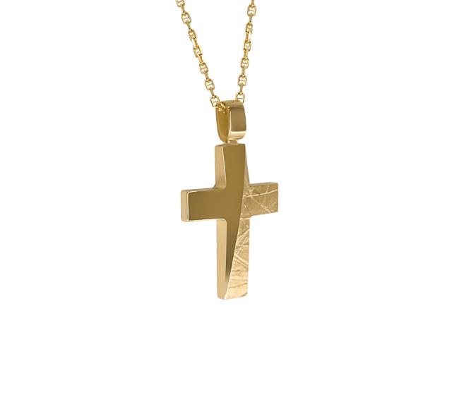 Ανδρικός σταυρός από κίτρινο χρυσό 18 καρατίων, συνδυάζοντας την απλότητα με την πολυτέλεια.