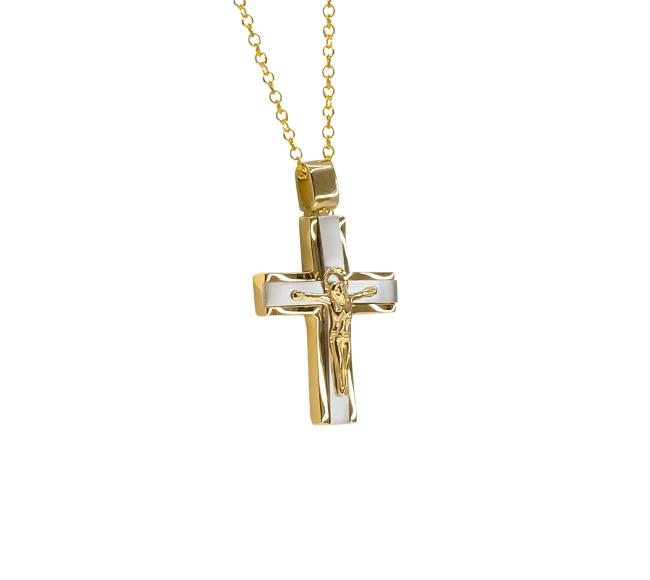 ΣΤΑΥΡΟΣ ΣΕ ΚΙΤΡΙΝΟ ΚΑΙ ΛΕΥΚΟ ΧΡΥΣΟ 14Κ (I004288)